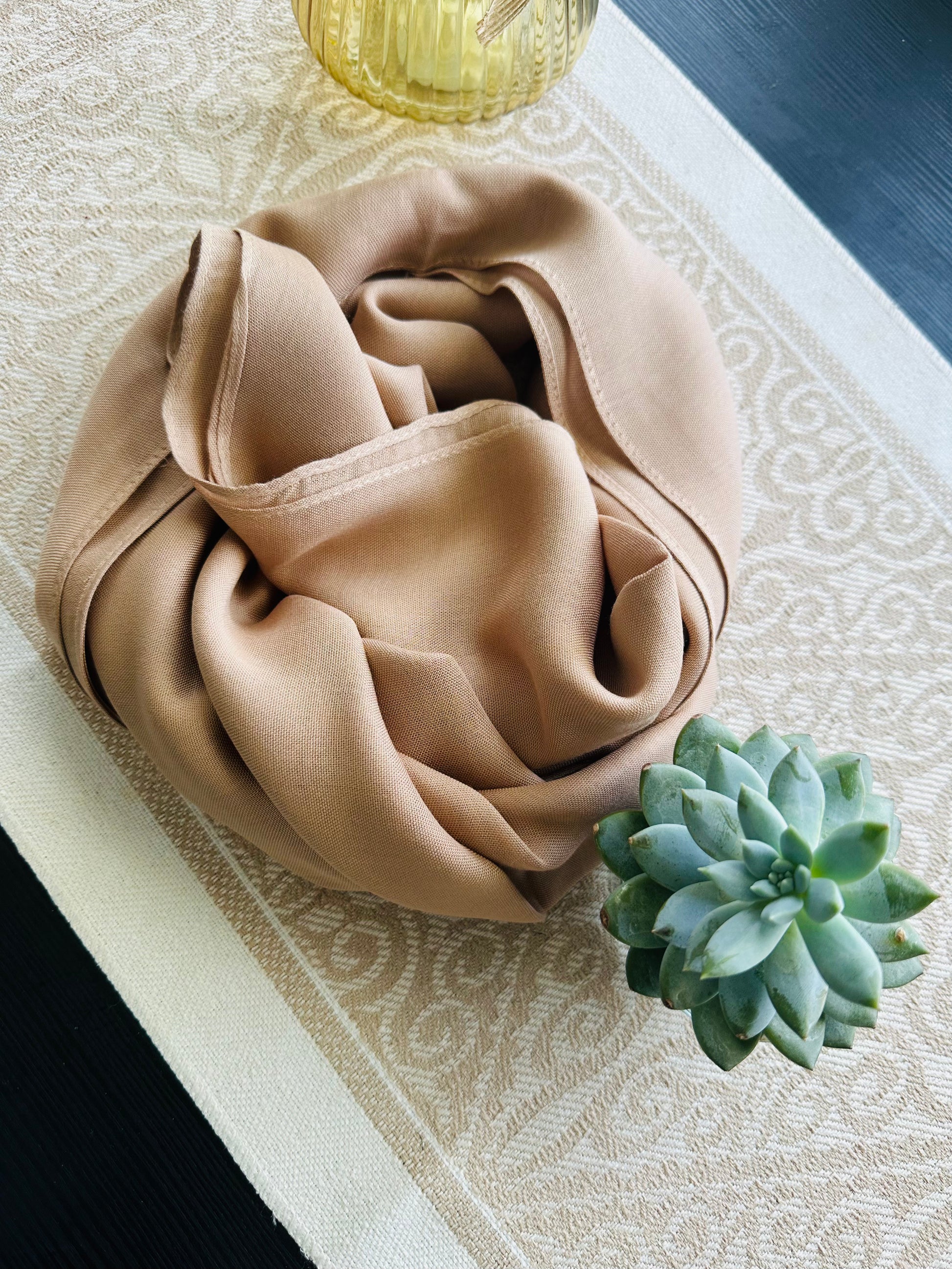 Smooth, warm, and effortlessly refined — our Luxury Modal Hijab in Latte is inspired by the soft tones of your favorite creamy coffee. With its subtle blend of beige and light caramel, this versatile hue adds a cozy sophistication to any look.